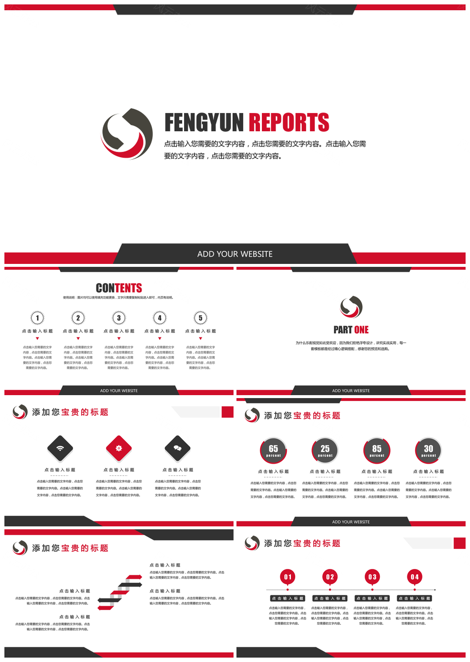 经典红黑色简约大气商务通用工作总结汇报PPT模板