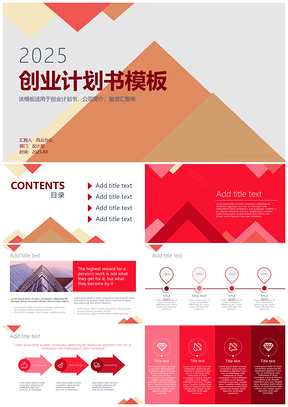 2025红色设计精美多图表创业计划书总结汇报PPT模板