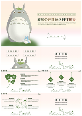 绿色卡通龙猫日式小清新通用PPT模板,卡通龙猫主题,日式小清新风格,通用性强,适用于各类演示。简洁明了的设计,让您的PPT脱颖而出,专业又富有创意。