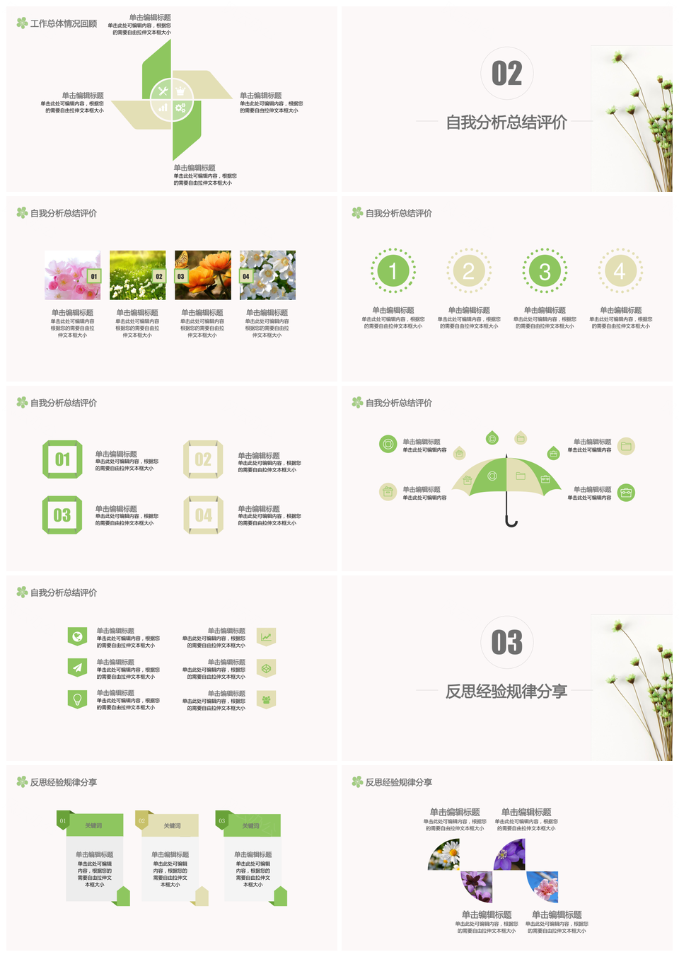 清新淡雅小清新浅绿色简约精致年终总结报告·商务PPT模板推荐