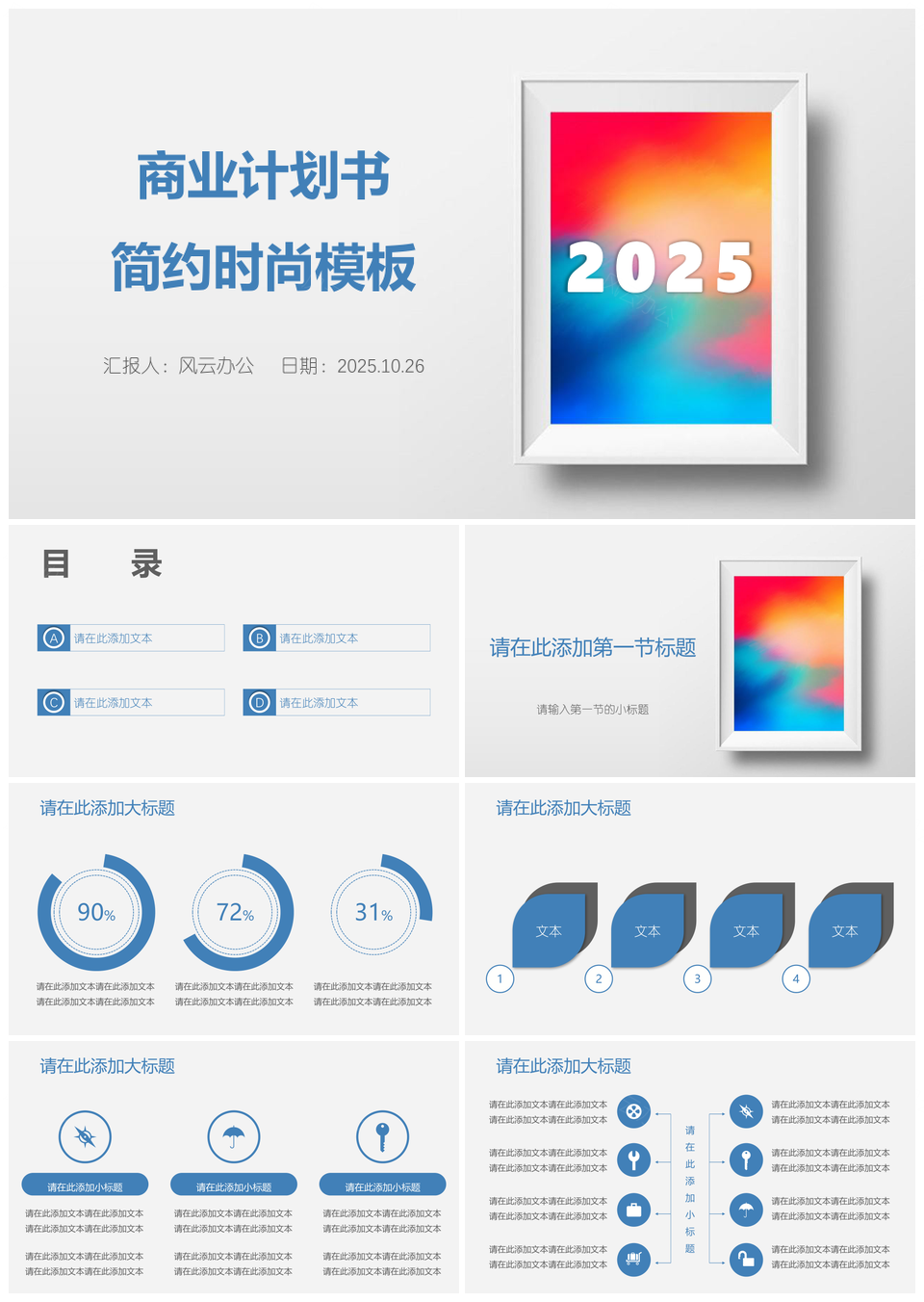 2025蓝色蓝白简约极简风商业计划书PPT模板