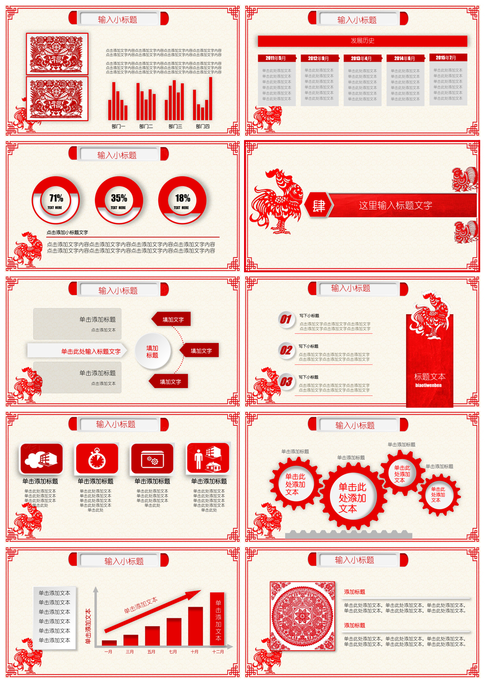 创意红色剪纸风PPT