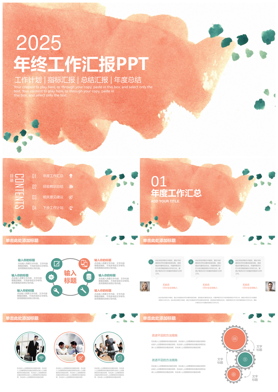 2025彩色年终总结清新文艺风年终工作总结汇报通用PPT模板