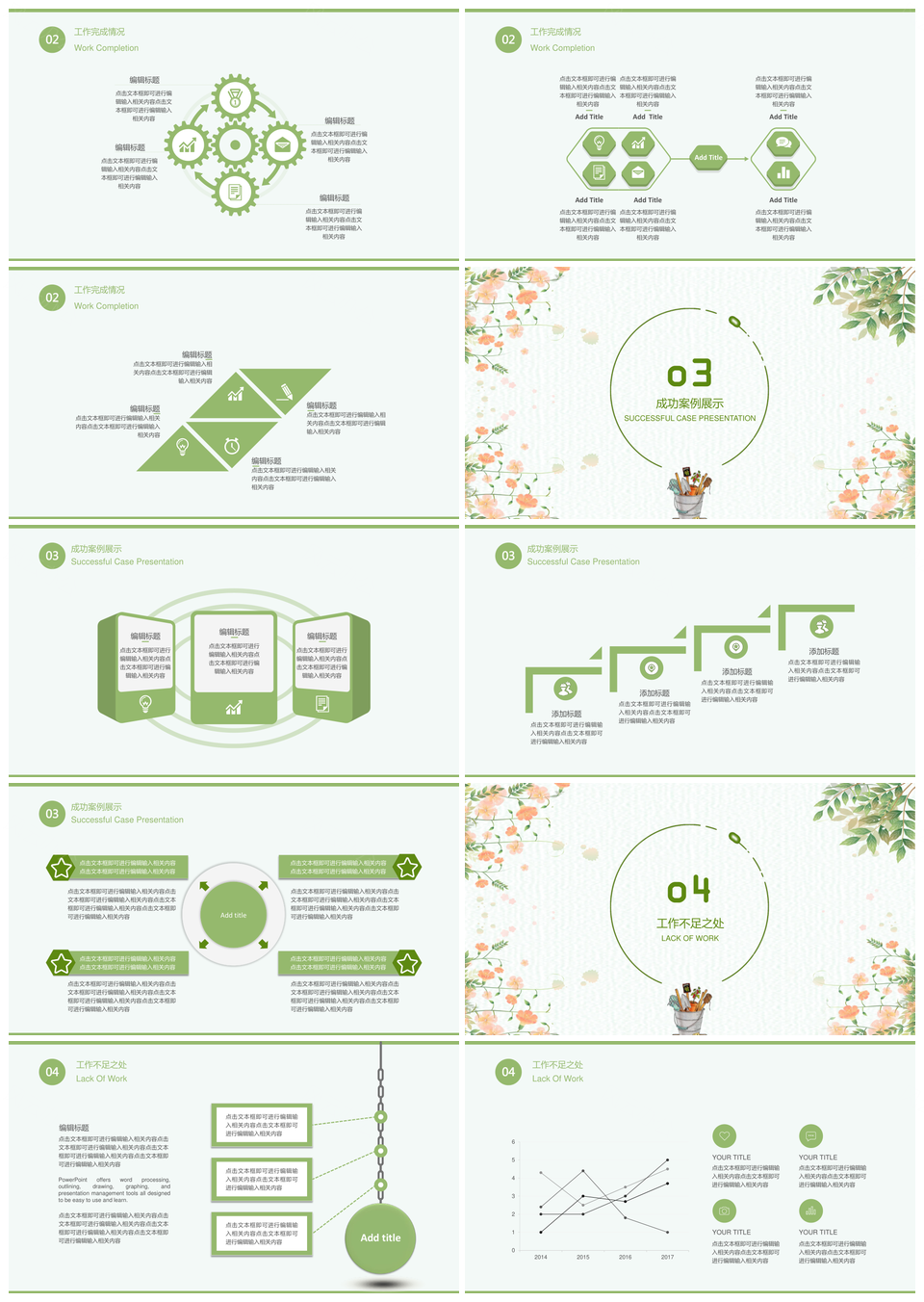 这是一张绿色花卉小清新通用PPT模板,包含绿色花卉、小清新等主题内容,也可用作绿色、花卉、小清新 绿色花卉小清新、绿色花卉、绿色小清新、花卉小清新等PPT场景使用。 风云办公提供的绿色花卉小清新通用PPT模板,下载格式为,一共19页,作品中文字及图均可以修改和编辑,图片更改请在作品中右键图片并更换,文字修改请直接点击文字进行修改。