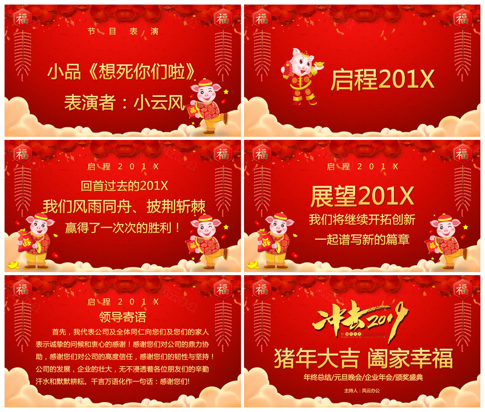 风云办公提供的猪年春节联欢晚会活动策划PPT模板,下载格式为pptx,一共22页,作品中文字及图均可以修改和编辑,图片更改请在作品中右键图片并更换,文字修改请直接点击文字进行修改。