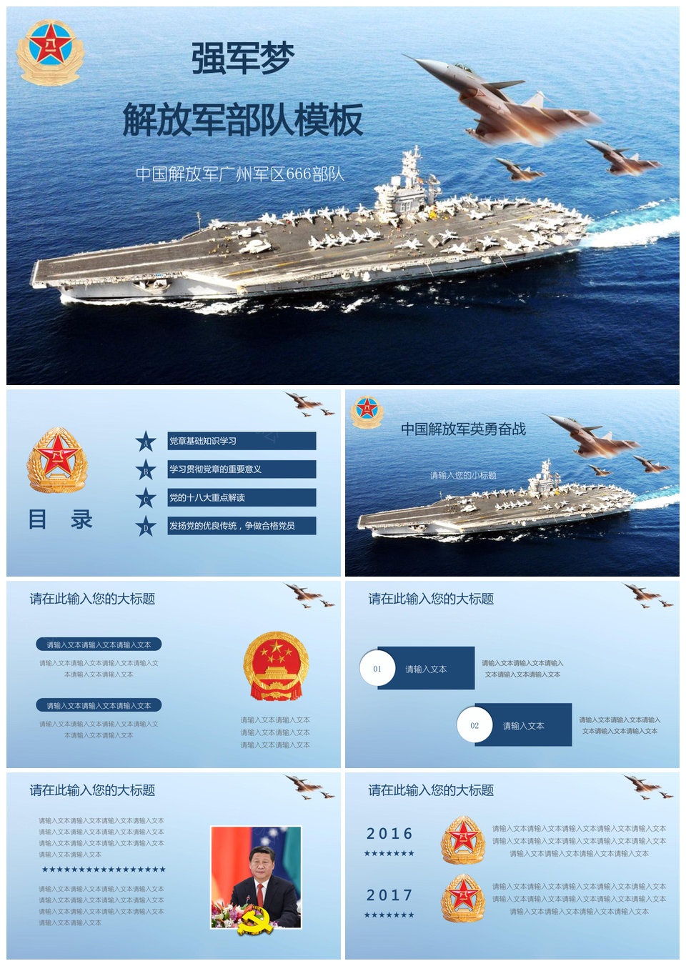 这是一张蓝色强军梦解放军部队PPT模板,包含蓝色强军梦、解放军部队等主题内容,也可用作蓝色强军梦解放军部队、蓝色强军梦解放军、强军梦解放军部队、蓝色强军梦、强军梦解放军、解放军部队等PPT场景使用。 风云办公提供的蓝色强军梦解放军部队PPT模板,下载格式为pptx,一共27页,作品中文字及图均可以修改和编辑,图片更改请在作品中右键图片并更换,文字修改请直接点击文字进行修改。