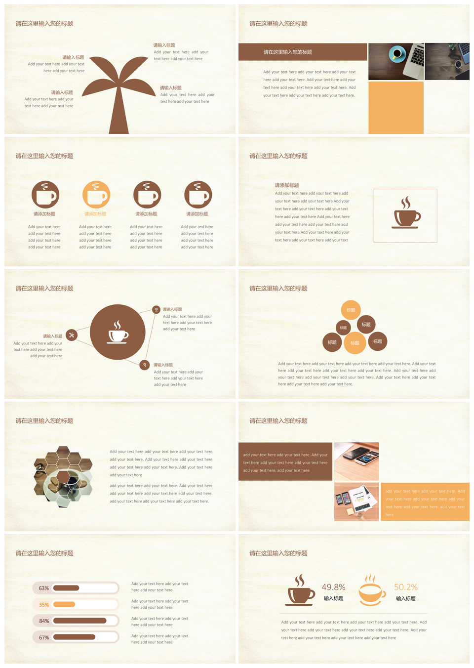 黄色咖啡办公商务PPT模板高质量推荐