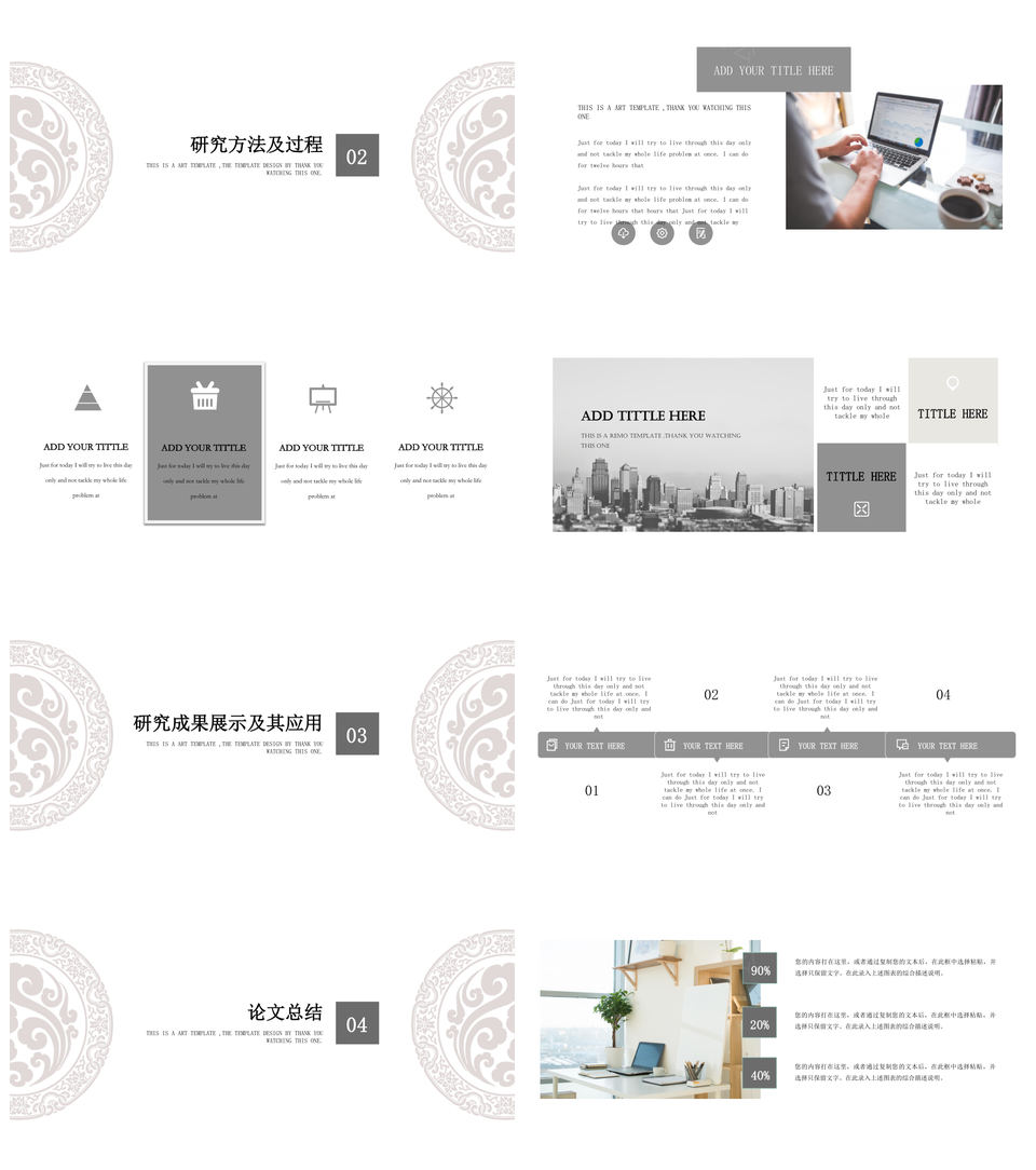 单色底全框架论文答辩PPT模板专业可编辑推荐