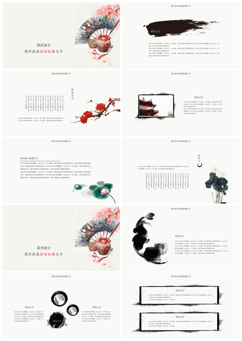 绿色浮生复古风文艺简约水墨年终总结PPT模板