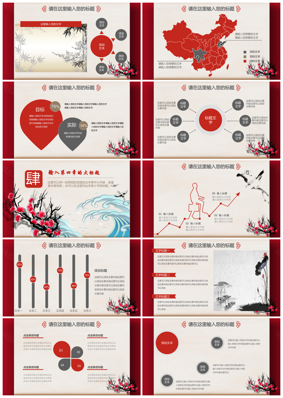 红色古典中国风创意通用工作汇报教育课件PPT模板