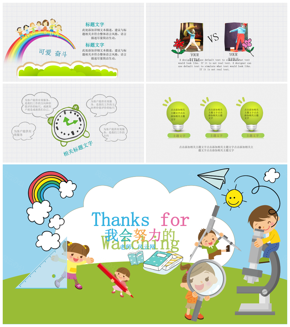 风云办公提供的彩色卡通幼儿教育六一主题PPT模板可编辑,下载格式为pptx,一共32页,作品中文字及图均可以修改和编辑,图片更改请在作品中右键图片并更换,文字修改请直接点击文字进行修改。