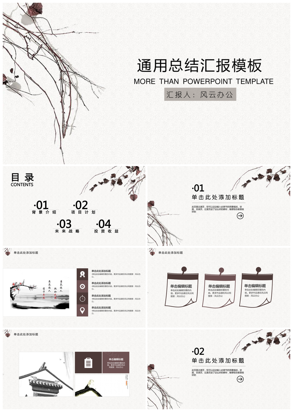 灰色中国风企业工作总结PPT模板汇报可编辑