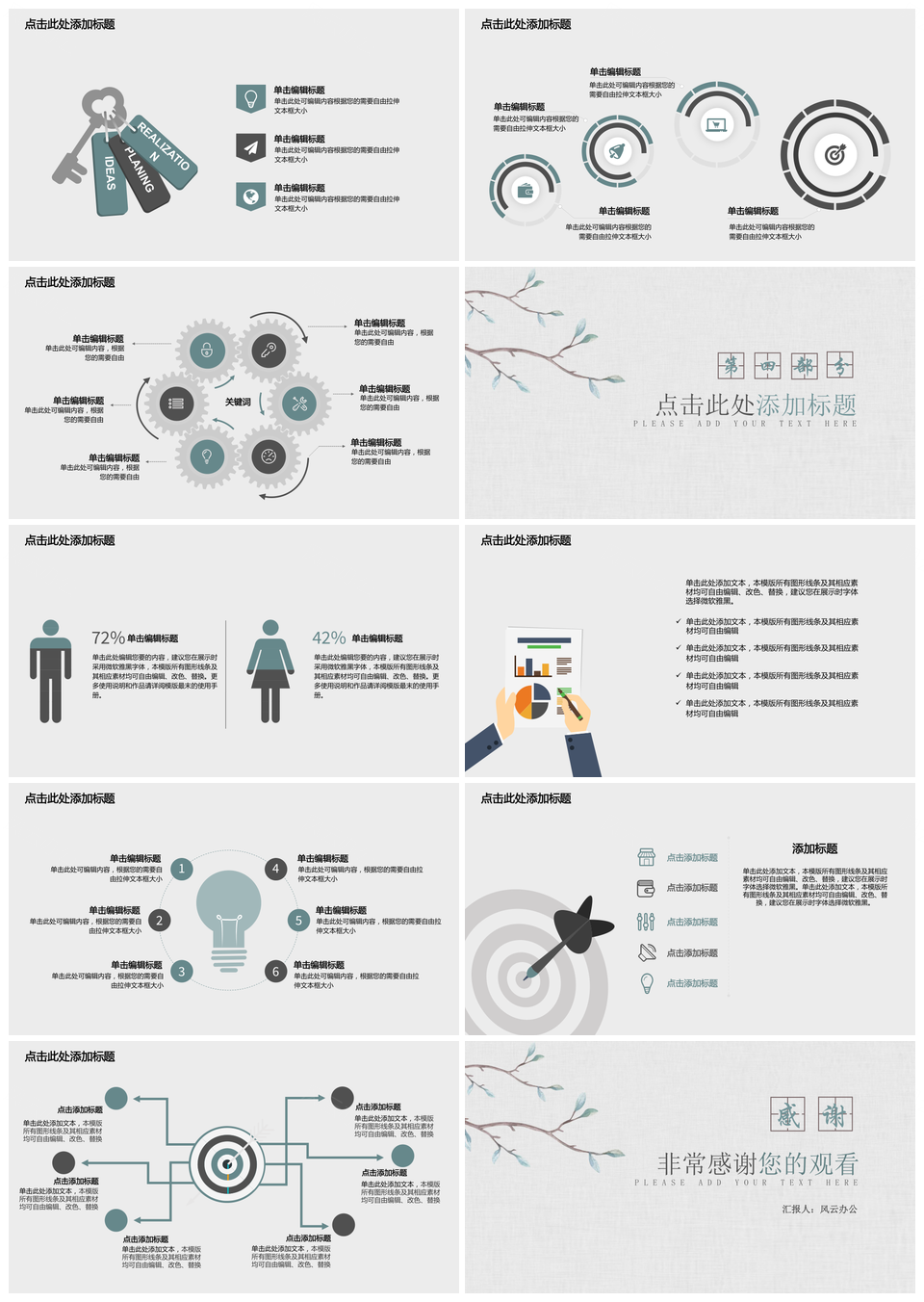 灰色中国风文艺复古禅意唯美工作汇报总结PPT模板