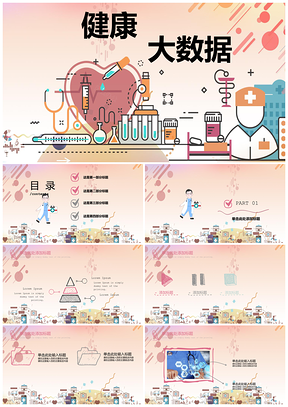 蓝色商务医疗健康医生听诊器器械PPT模板