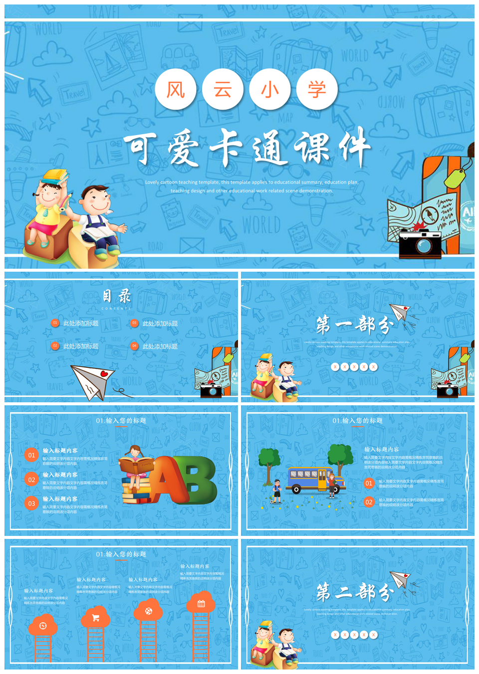 这是一张可爱卡通课件PPT模板,包含可爱、卡通、课件等主题内容,也可用作可爱、卡通、课件 可爱卡通课件、可爱卡通、可爱课件、卡通课件等PPT场景使用。 风云办公提供的可爱卡通课件PPT模板,下载格式为pptx,一共18页,作品中文字及图均可以修改和编辑,图片更改请在作品中右键图片并更换,文字修改请直接点击文字进行修改。