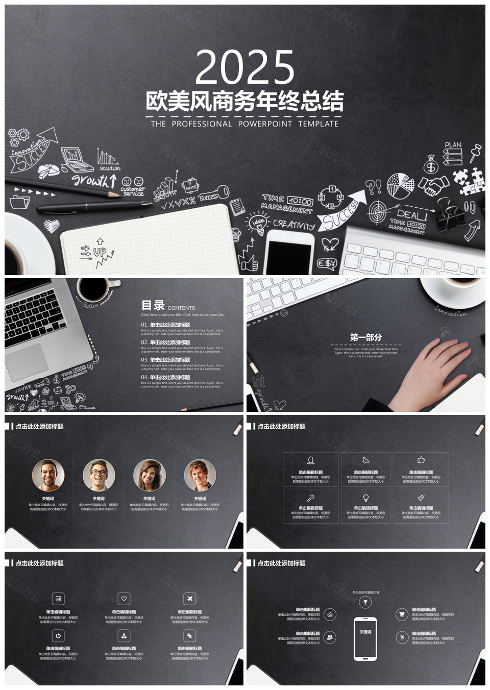 黑白欧美商务年终总结PPT模板可编辑推荐