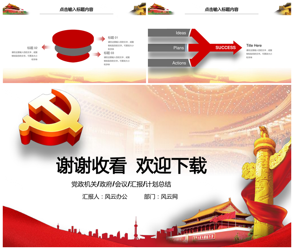 红色党政机关年终工作总结及明年计划迎检报告PPT模板
