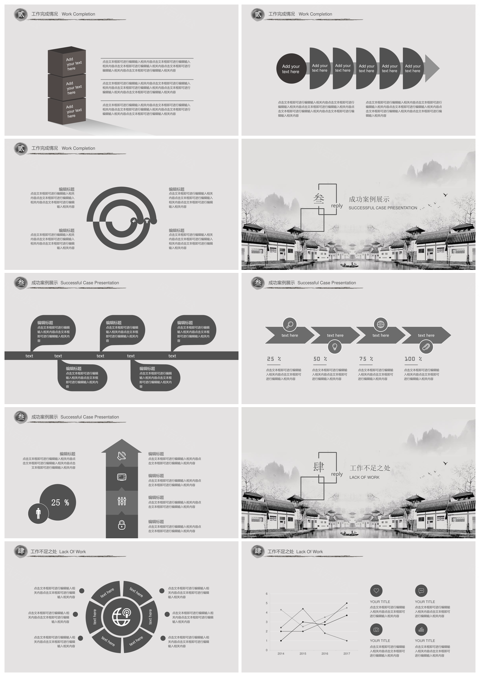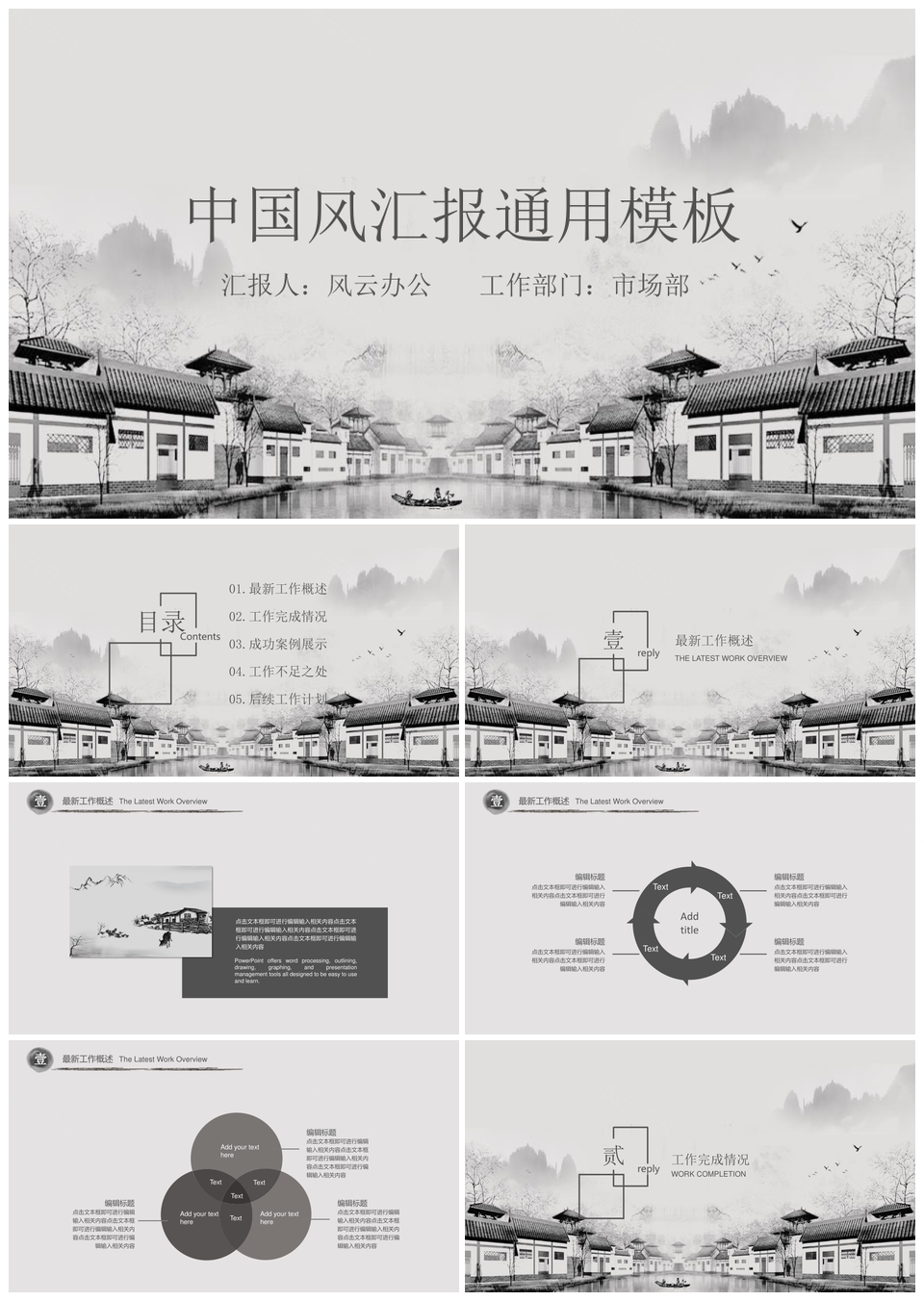 这是一张中国风汇报总结通用PPT模板,包含中国风、汇报、总结等主题内容,也可用作中国风、汇报、总结 中国风汇报总结、中国风汇报、中国风总结、汇报总结等PPT场景使用。 风云办公提供的中国风汇报总结通用PPT模板,下载格式为,一共19页,作品中文字及图均可以修改和编辑,图片更改请在作品中右键图片并更换,文字修改请直接点击文字进行修改。