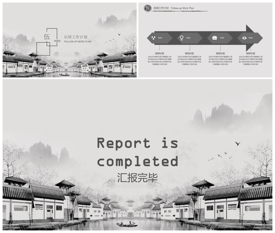 灰色中国风企业工作总结汇报计划书通用PPT模板