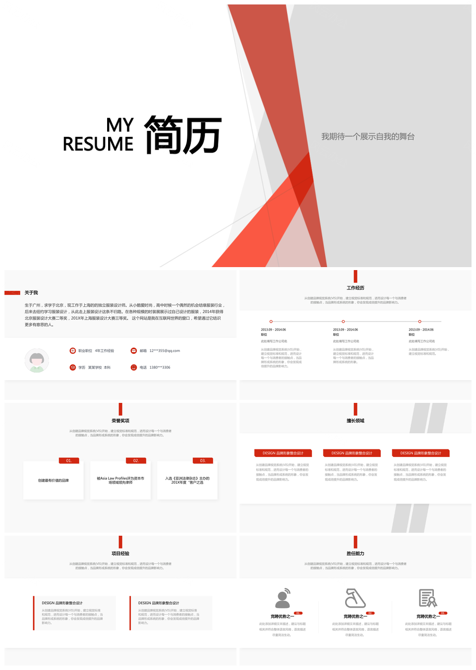 红色几何简约简历PPT