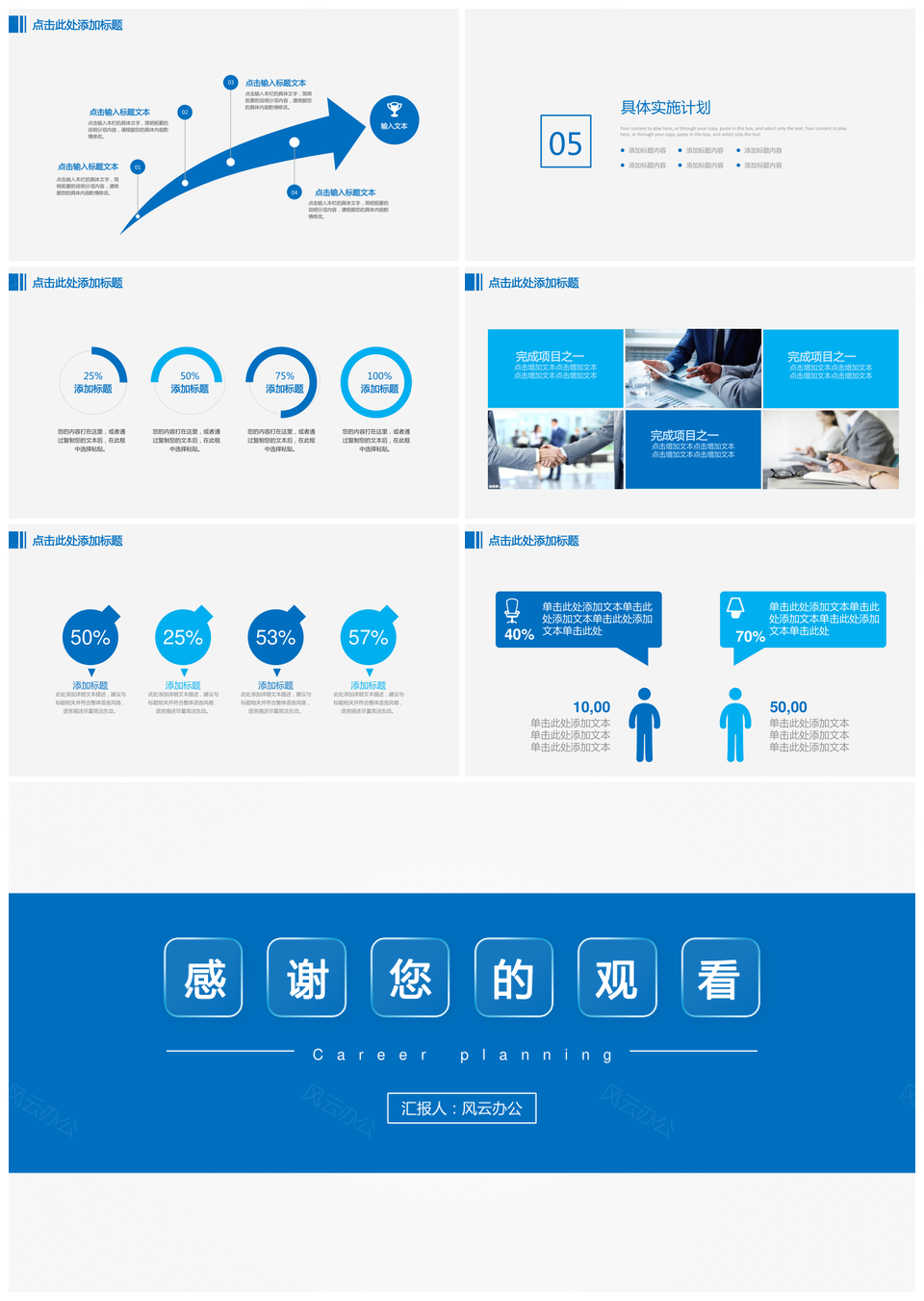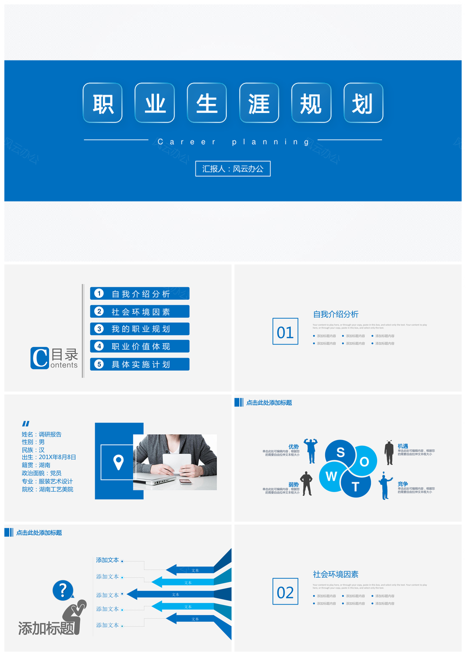 大学生蓝色简约商务风职业生涯规划PPT模板