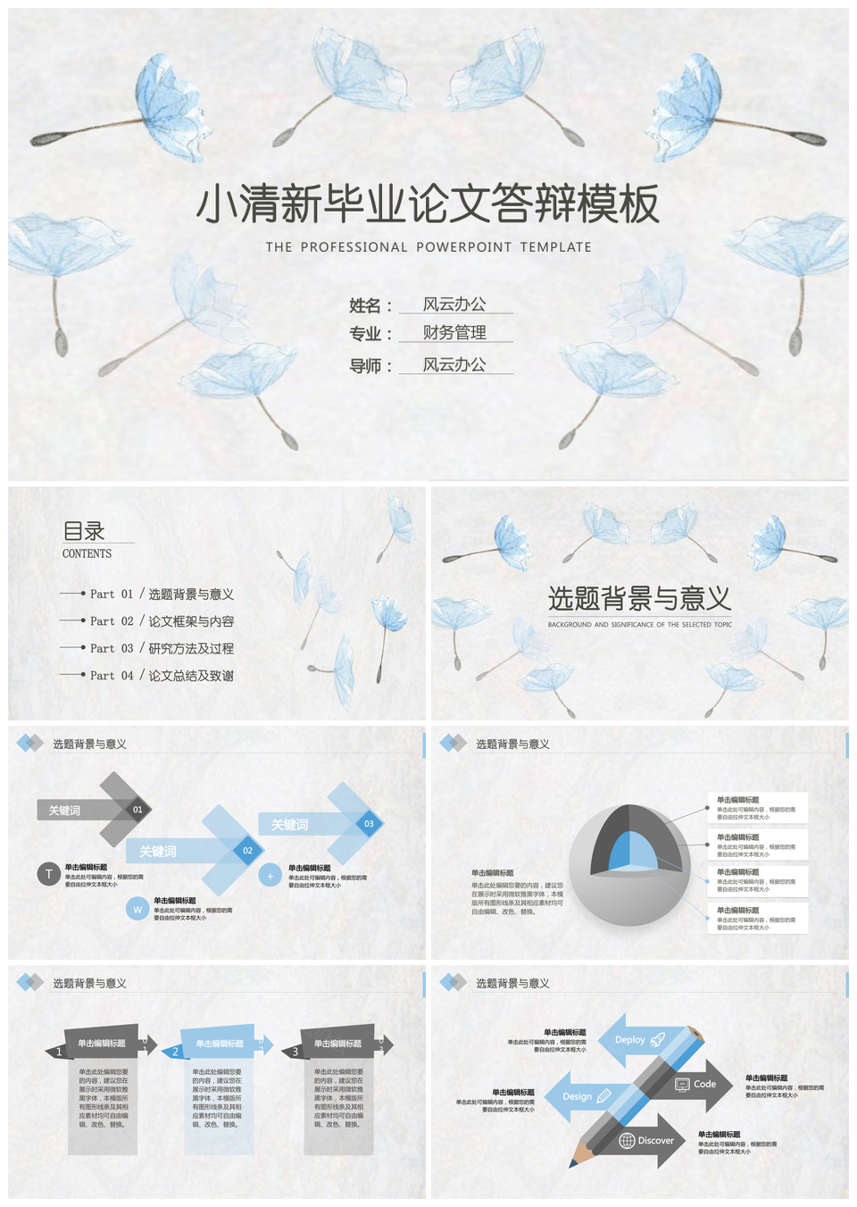 这是一张灰色小清新毕业答辩PPT模板,包含毕业论文、答辩、小清新、精美等主题内容,也可用作灰色毕业论文答辩小清新、毕业论文答辩小清新精美、小清新精美通用、灰色毕业论文答辩、毕业论文答辩小清新、小清新精美通用、灰色毕业论文、毕业论文答辩、答辩小清新、小清新精美、精美通用等PPT场景使用。 风云办公提供的灰色小清新毕业答辩PPT模板,下载格式为pptx,一共32页,作品中文字及图均可以修改和编辑,图片更改请在作品中右键图片并更换,文字修改请直接点击文字进行修改。