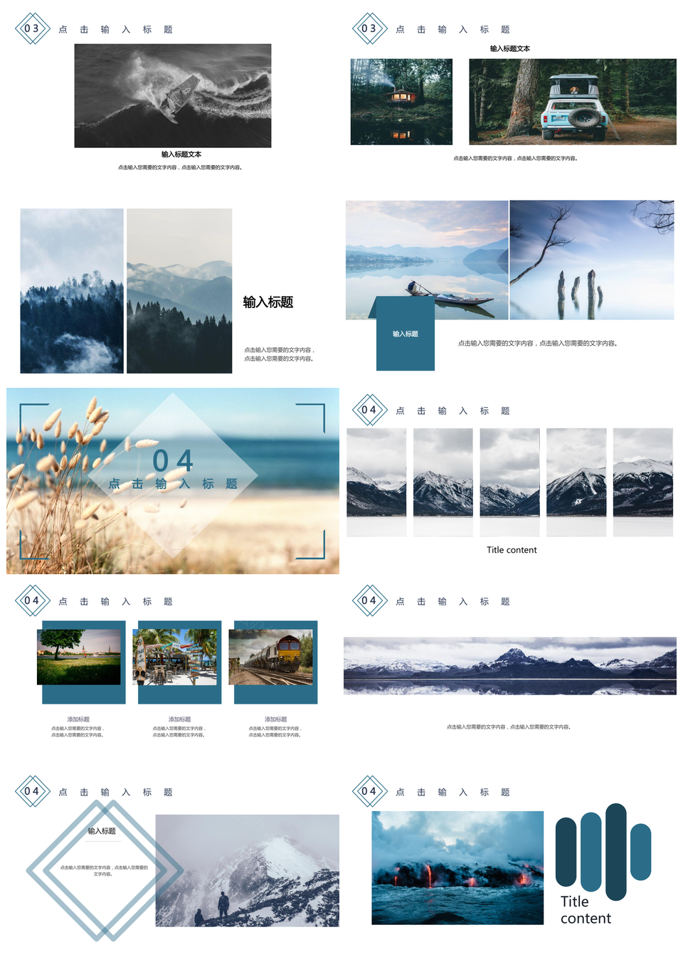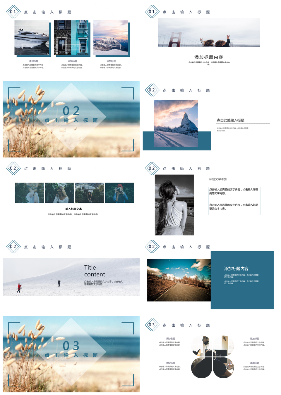 蓝色风景照杂志风旅行日志旅游画册相册PPT模板