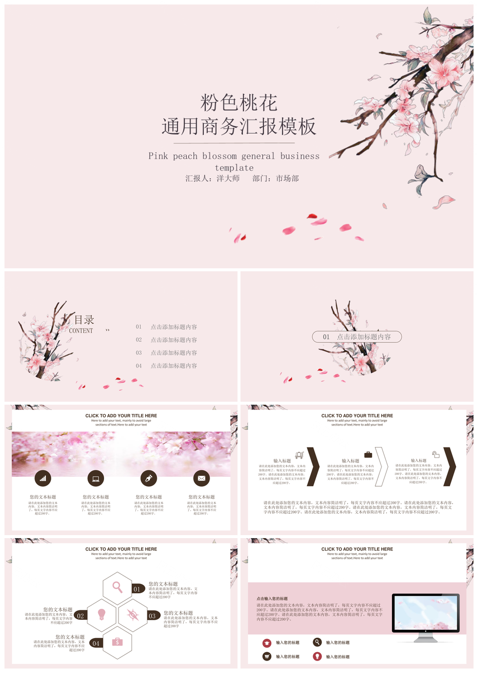 这是一张粉色桃花商务PPT模板可编辑,包含粉色桃花、商务等主题内容,也可用作粉色桃花通用商务、粉色桃花通用、粉色桃花商务、粉色通用商务、桃花通用商务、粉色桃花、粉色通用、粉色商务、桃花通用、桃花商务、通用商务等PPT场景使用。 风云办公提供的粉色桃花商务PPT模板可编辑,下载格式为pptx,一共24页,作品中文字及图均可以修改和编辑,图片更改请在作品中右键图片并更换,文字修改请直接点击文字进行修改。