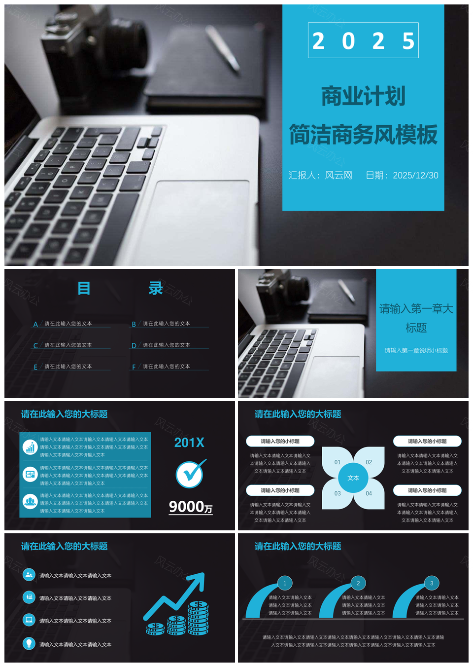 2025蓝色大气商业计划简洁商务风PPT模板推荐