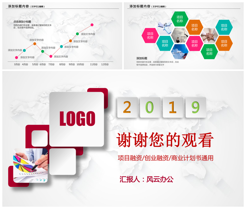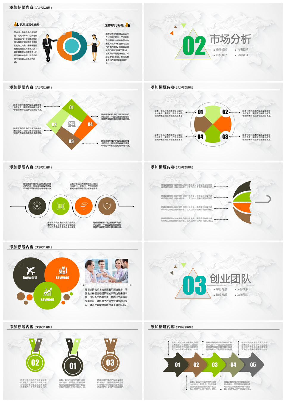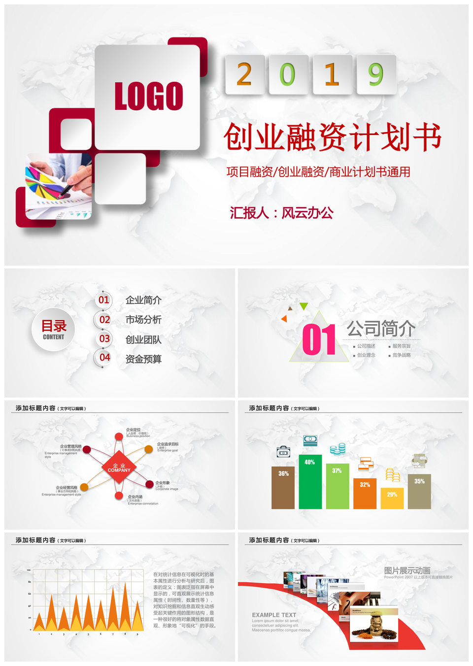 彩色简约实用微立体风创业商业融资计划书项目运营策划PPT模板