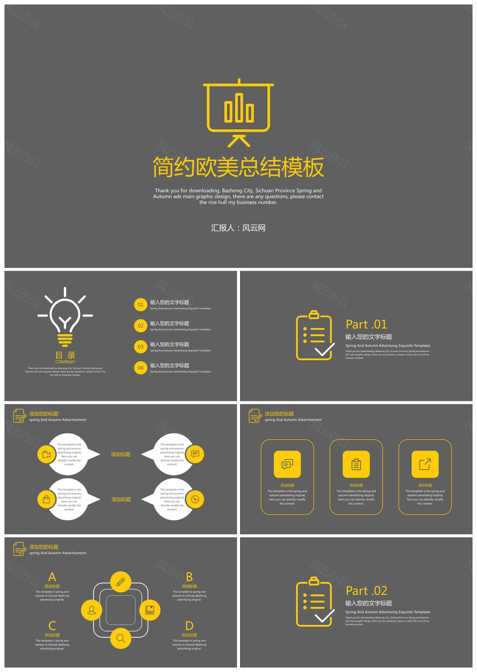 风云办公提供的精美灰色年终计划PPT模板可编辑高质量,下载格式为pptx,一共17页,作品中文字及图均可以修改和编辑,图片更改请在作品中右键图片并更换,文字修改请直接点击文字进行修改。