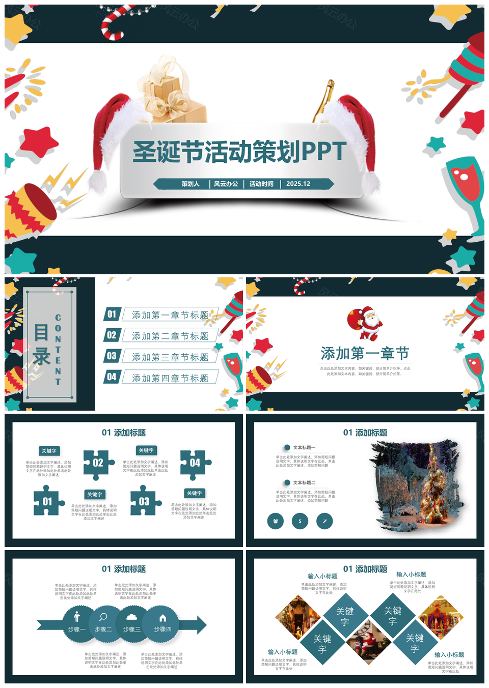 风云办公提供的2025创意圣诞节平安夜活动策划PPT模板,下载格式为pptx,一共26页,作品中文字及图均可以修改和编辑,图片更改请在作品中右键图片并更换,文字修改请直接点击文字进行修改。