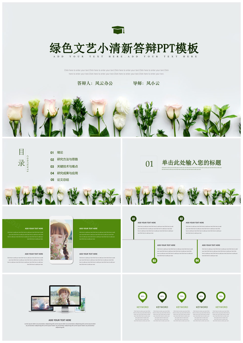 毕业设计绿色清新文艺毕业答辩PPT模板