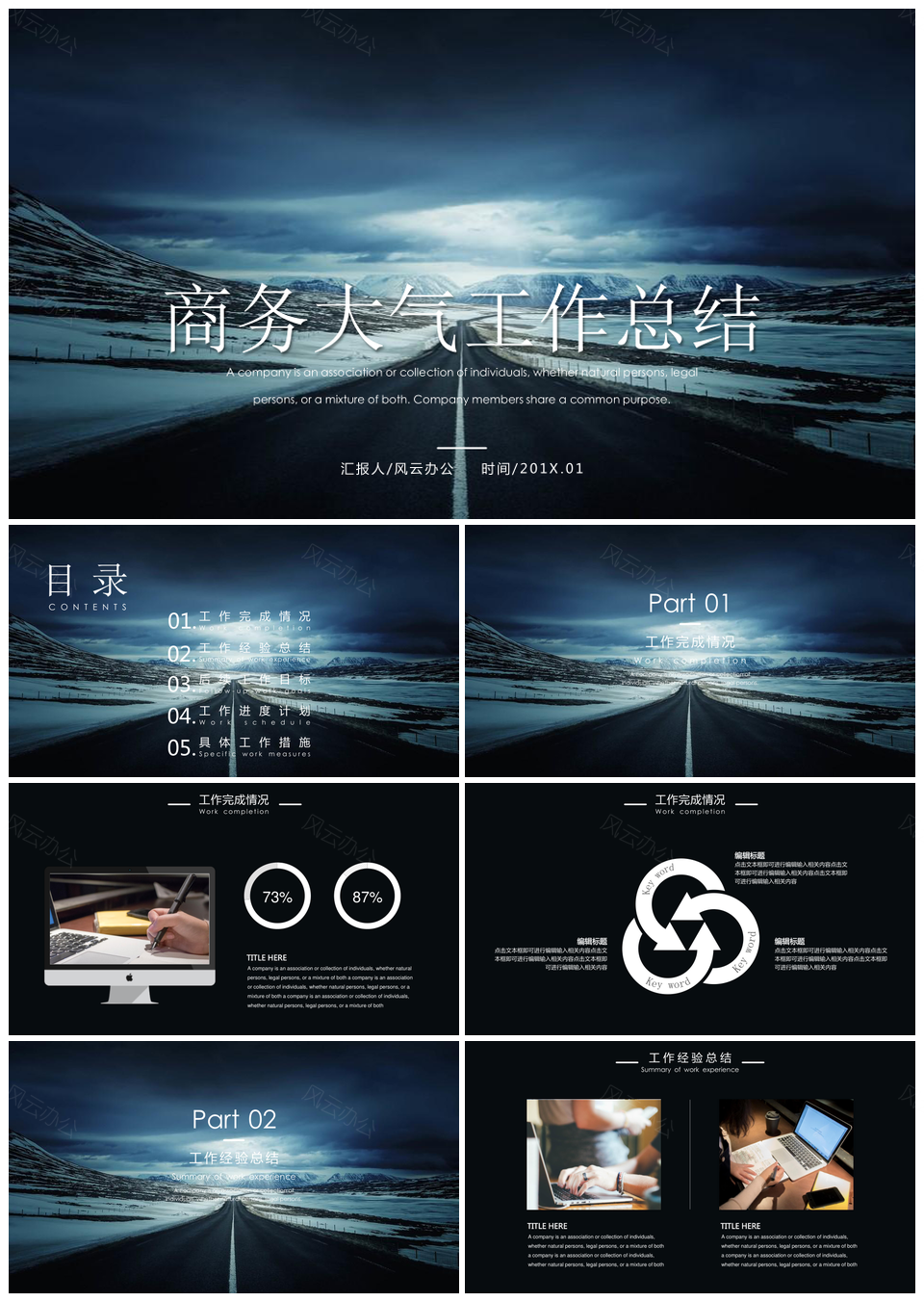 这是一张商务大气工作总结PPT模板,包含商务、大气、工作总结等主题内容,也可用作商务、大气、工作、总结 商务大气工作总结、商务大气工作、商务工作总结、大气工作总结、商务大气、商务工作、商务总结、工作总结等PPT场景使用。 风云办公提供的商务大气工作总结PPT模板,下载格式为,一共17页,作品中文字及图均可以修改和编辑,图片更改请在作品中右键图片并更换,文字修改请直接点击文字进行修改。