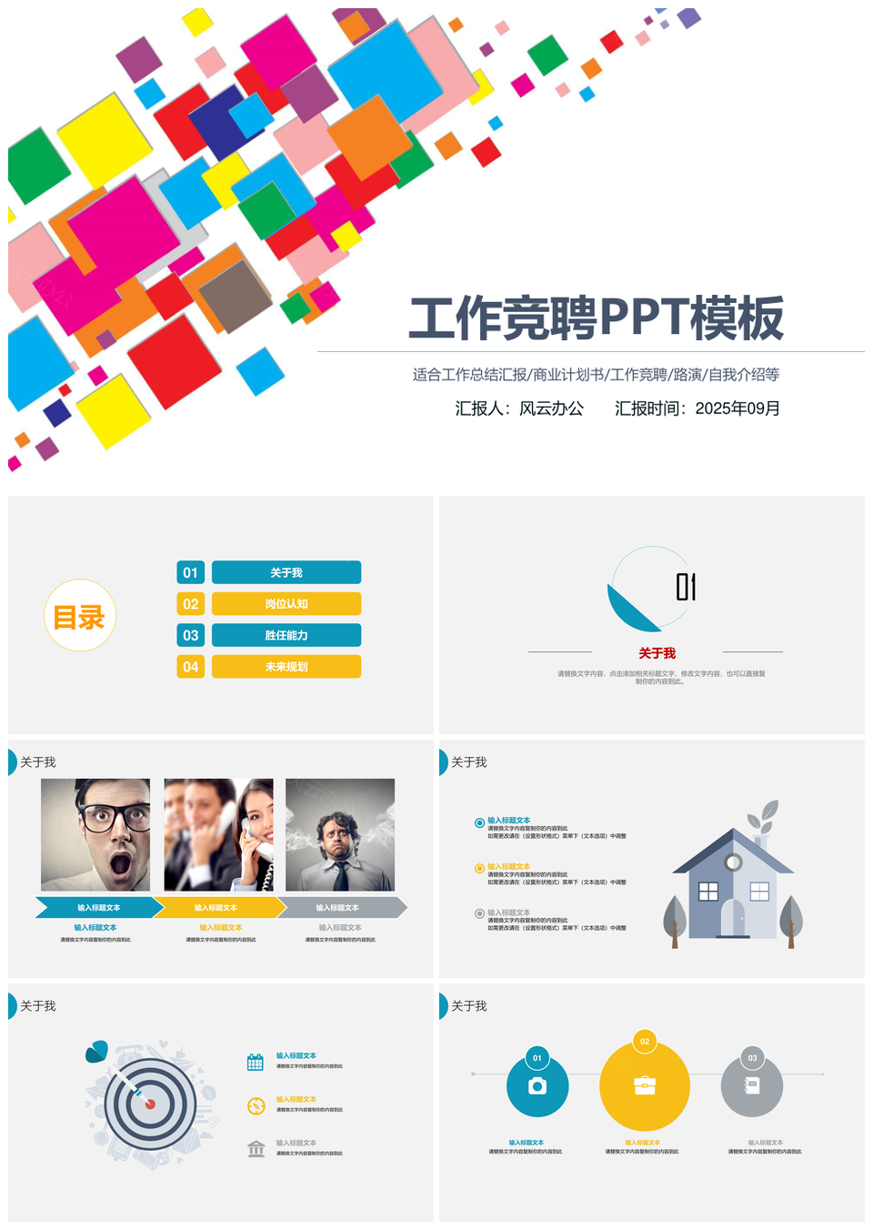 2025黄色商务风工作汇报计划总结几何极简求职竞聘PPT模板