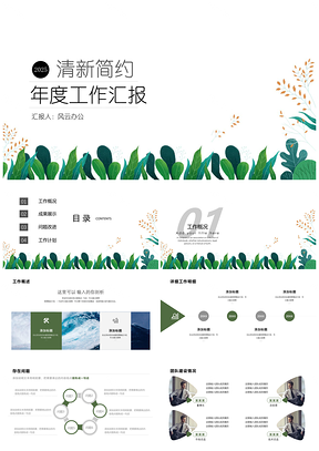 这是一张,包含绿色、年度、工作总结、工作汇报等主题内容,也可用作绿色年度工作总结、绿色年度工作汇报、年度工作总结汇报、绿色工作总结汇报、绿色年度工作、年度工作总结、工作总结汇报、绿色工作汇报、年度工作汇报、绿色年度、年度工作、工作总结、工作汇报、总结汇报等PPT场景使用。 风云办公提供的,下载格式为pptx,一共31页,作品中文字及图均可以修改和编辑,图片更改请在作品中右键图片并更换,文字修改请直接点击文字进行修改。