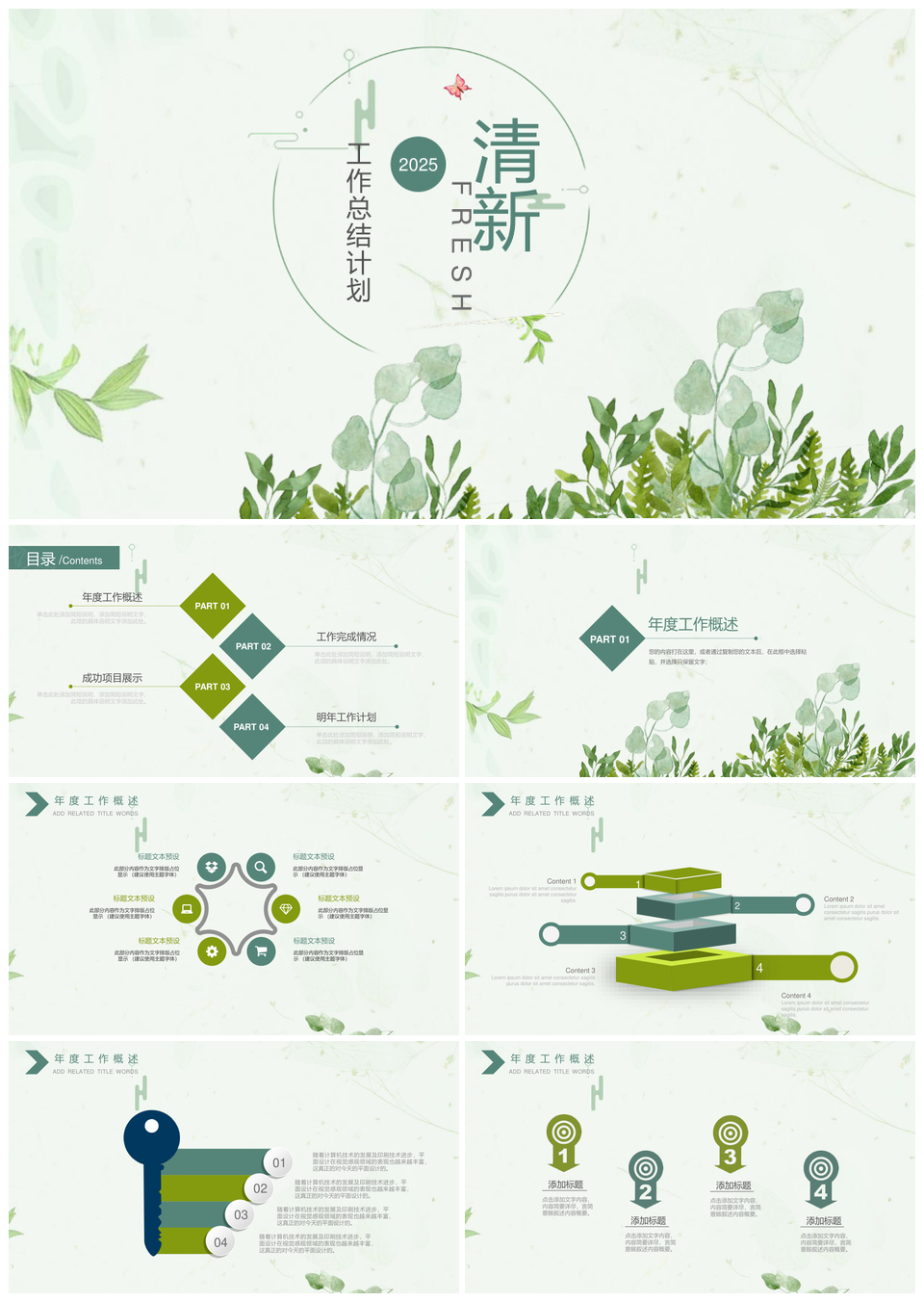 2025工作汇报绿色清新淡雅工作总结计划汇报PPT模板