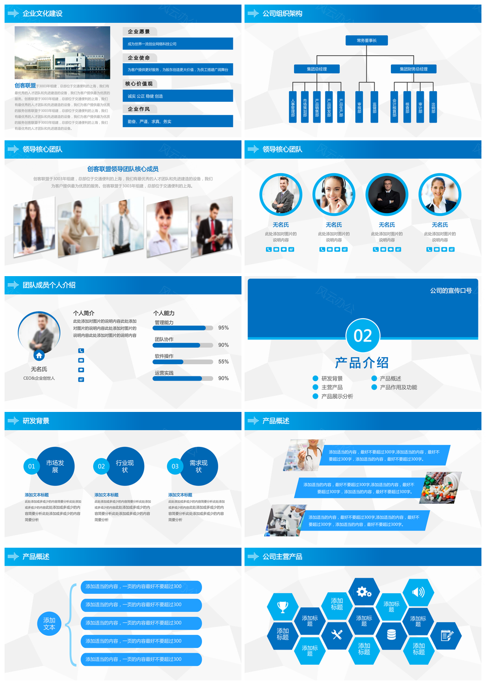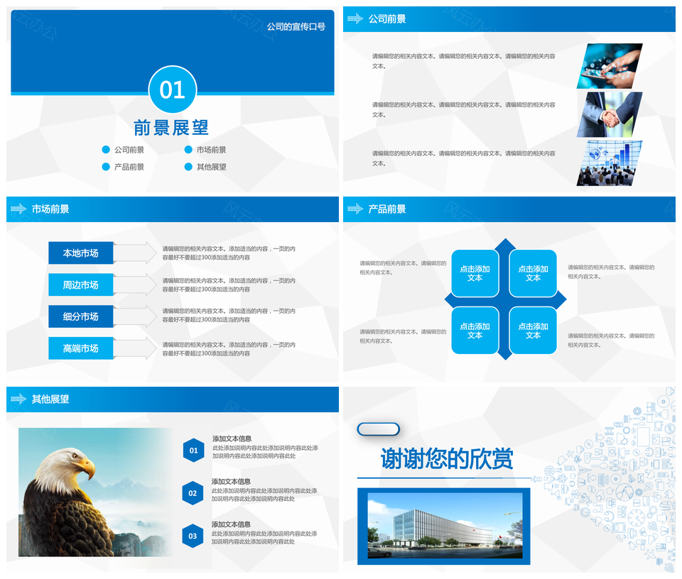 这是一张蓝色企业产品推介融资高端PPT模板,包含蓝色、企业、宣传、产品、推介、创业、融资等主题内容,也可用作蓝色企业宣传产品、企业宣传产品推介、产品推介创业融资、蓝色企业宣传、企业宣传产品、宣传产品推介、产品推介创业、推介创业融资、蓝色企业、企业宣传、宣传产品、产品推介、推介创业、创业融资等PPT场景使用。 风云办公提供的蓝色企业产品推介融资高端PPT模板,下载格式为pptx,一共33页,作品中文字及图均可以修改和编辑,图片更改请在作品中右键图片并更换,文字修改请直接点击文字进行修改。