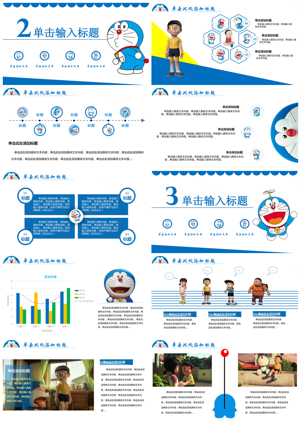 风云办公提供的蓝色哆啦A梦动态卡通PPT精美模板,下载格式为pptx,一共23页,作品中文字及图均可以修改和编辑,图片更改请在作品中右键图片并更换,文字修改请直接点击文字进行修改。