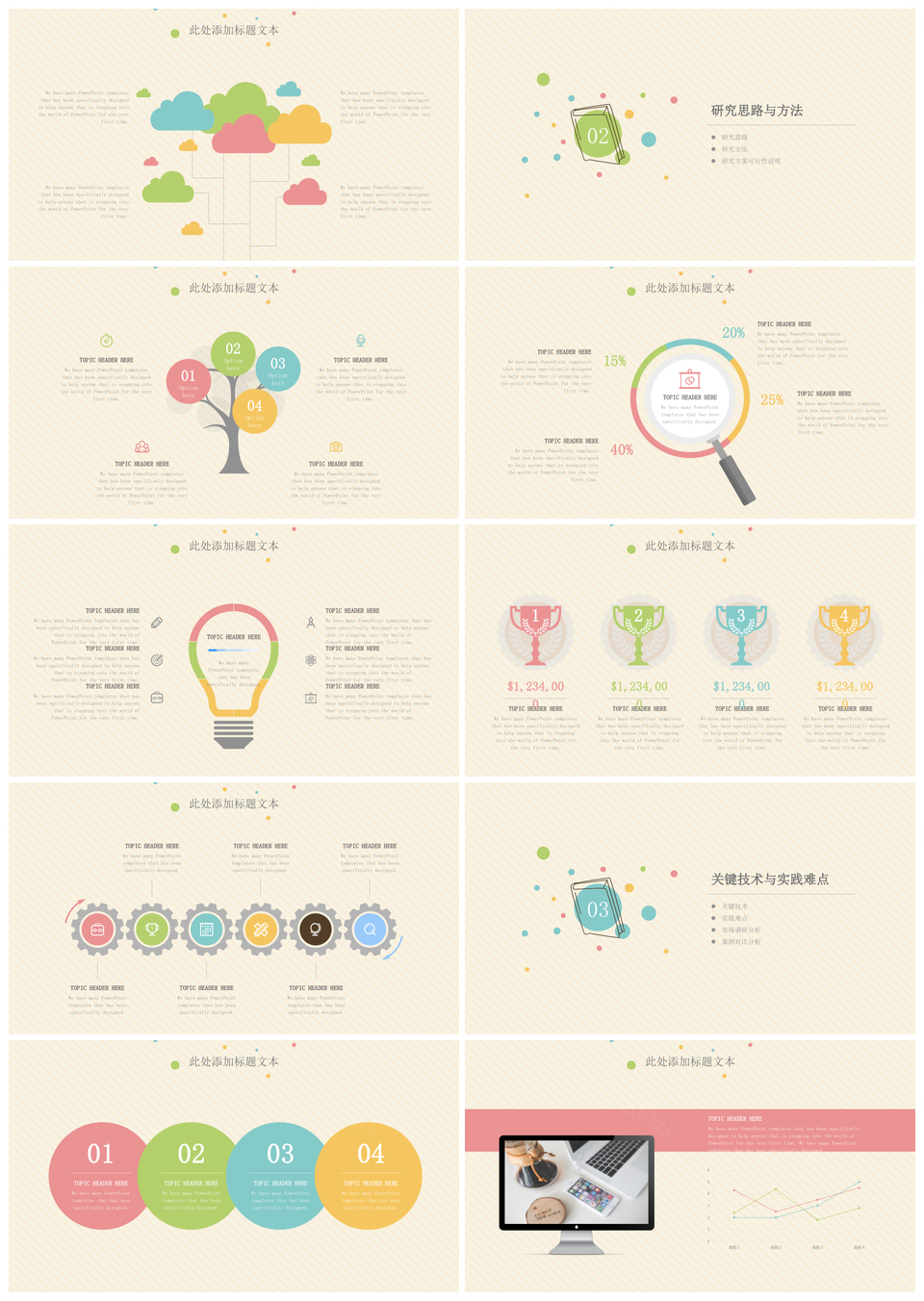 彩色科学研究试验小清新毕业论文答辩PPT模板
