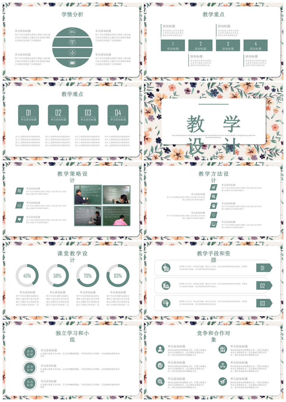 这是一张彩色小清新教育说课公开课动态高端PPT模板,包含彩色、唯美、小清新、教育、说课设计、公开课等主题内容,也可用作彩色唯美小清新教育、教育说课设计公开课、说课设计公开课动态、彩色唯美小清新、教育说课设计、说课设计公开课、设计公开课动态、彩色唯美、唯美小清新、教育说课、说课设计、设计公开课、公开课动态等PPT场景使用。