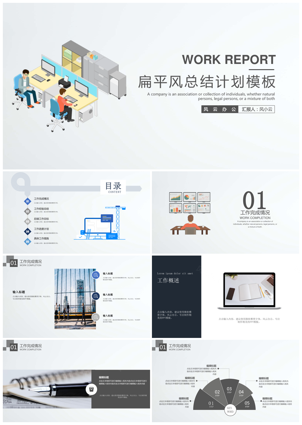 彩色扁平风通用计划汇报工作总结年终总结PPT模板推荐