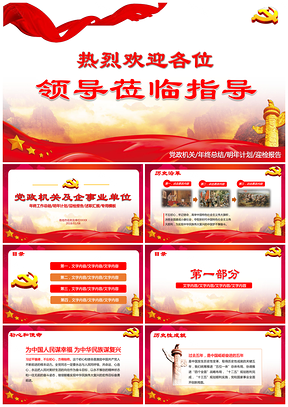 红色党政机关企事业单位年终工作总结及明年计划迎检报告PPT模板
