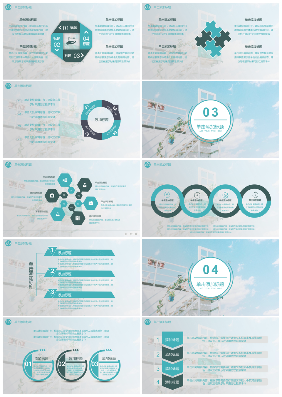 蓝色绿色小清新淡雅PPT模板