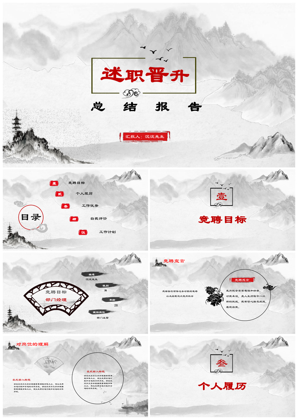 这是一张灰色水墨竞聘述职PPT模板精美,包含灰色框架、齐全、水墨、中国风、国画、竞聘、述职报告等主题内容,也可用作灰色框架齐全水墨、框架齐全水墨中国风、齐全水墨中国风国画、水墨中国风国画竞聘、中国风国画竞聘述职报告、灰色框架齐全、框架齐全水墨、齐全水墨中国风、水墨中国风国画、中国风国画竞聘、国画竞聘述职报告、灰色框架、框架齐全、齐全水墨、水墨中国风、中国风国画、国画竞聘、竞聘述职报告等PPT场景使用。