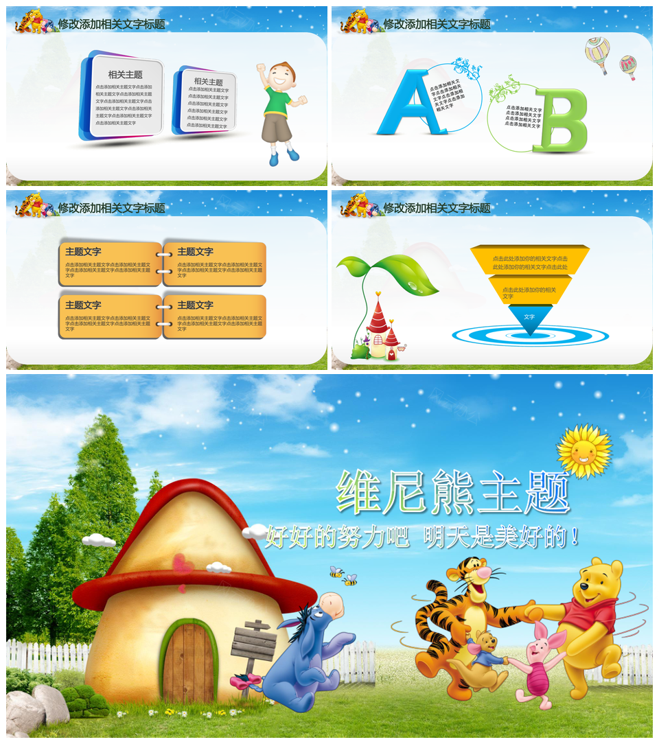 风云办公提供的蓝色维尼熊幼儿小学课件PPT模板,下载格式为pptx,一共32页,作品中文字及图均可以修改和编辑,图片更改请在作品中右键图片并更换,文字修改请直接点击文字进行修改。