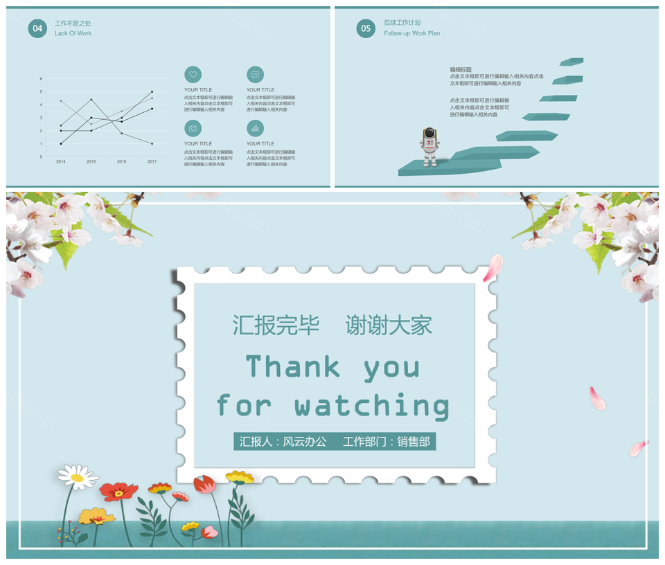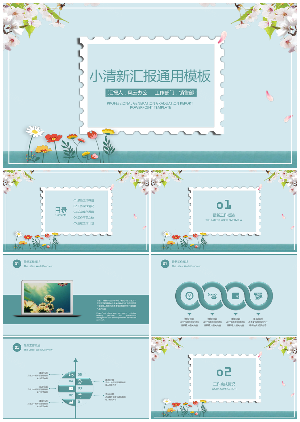 这是一张蓝色小清新汇报总结通用PPT模板,包含蓝色、小清新、汇报总结等主题内容,也可用作蓝色、小清新、汇报、总结 蓝色小清新汇报总结、蓝色小清新汇报、蓝色小清新总结、小清新汇报总结、蓝色汇报总结、蓝色小清新、汇报总结、小清新总结、小清新汇报、蓝色总结、蓝色汇报等PPT场景使用。 风云办公提供的蓝色小清新汇报总结通用PPT模板,下载格式为,一共19页,作品中文字及图均可以修改和编辑,图片更改请在作品中右键图片并更换,文字修改请直接点击文字进行修改。
