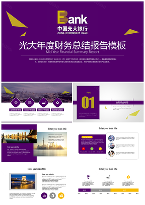 紫色2025光大银行年终总结报告PPT模板,202X年,光大银行砥砺前行,成绩斐然。本报告以数据为依托,全面总结年度业绩,展望未来战略发展,共绘企业美好蓝图。