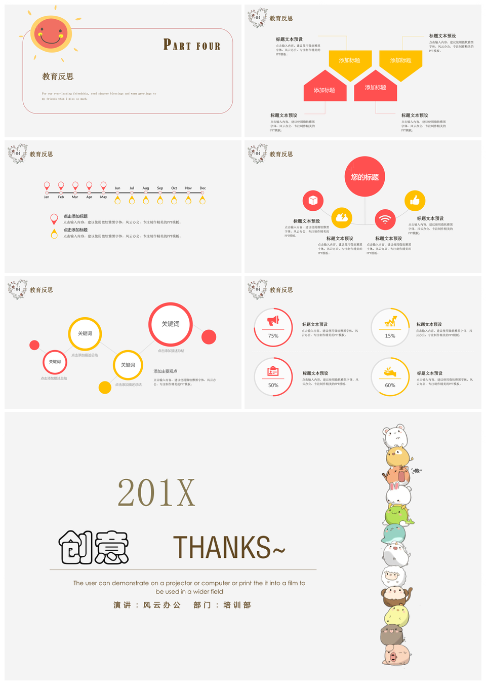 风云办公提供的创意可爱卡通小清新教育课件培训PPT模板,下载格式为pptx,一共24页,作品中文字及图均可以修改和编辑,图片更改请在作品中右键图片并更换,文字修改请直接点击文字进行修改。
