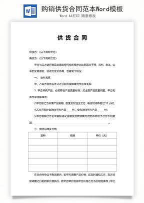风云办公提供供货合同范本附供货明细表Word模板下载,格式为 docx,一共5页,作品中文字及图均可以修改和编辑,图片更改请在作品中右键图片并更换,文字修改请直接点击文字进行修改。更多精彩合同协议Word模板,尽在风云办公。